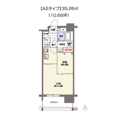 | 間取 | 1LDK、2LDK | 専有面積 | 33.97㎡~50.27㎡ | ||||||||